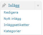 Efter att du loggat in har du menyn till vänster, och det är här du sköter allt. Om du är bloggare är det under Inlägg du kommer befinna dig oftast, och om du har en ”vanlig hemsida” använder du Sidor oftare. Det går dock också att kombinera.