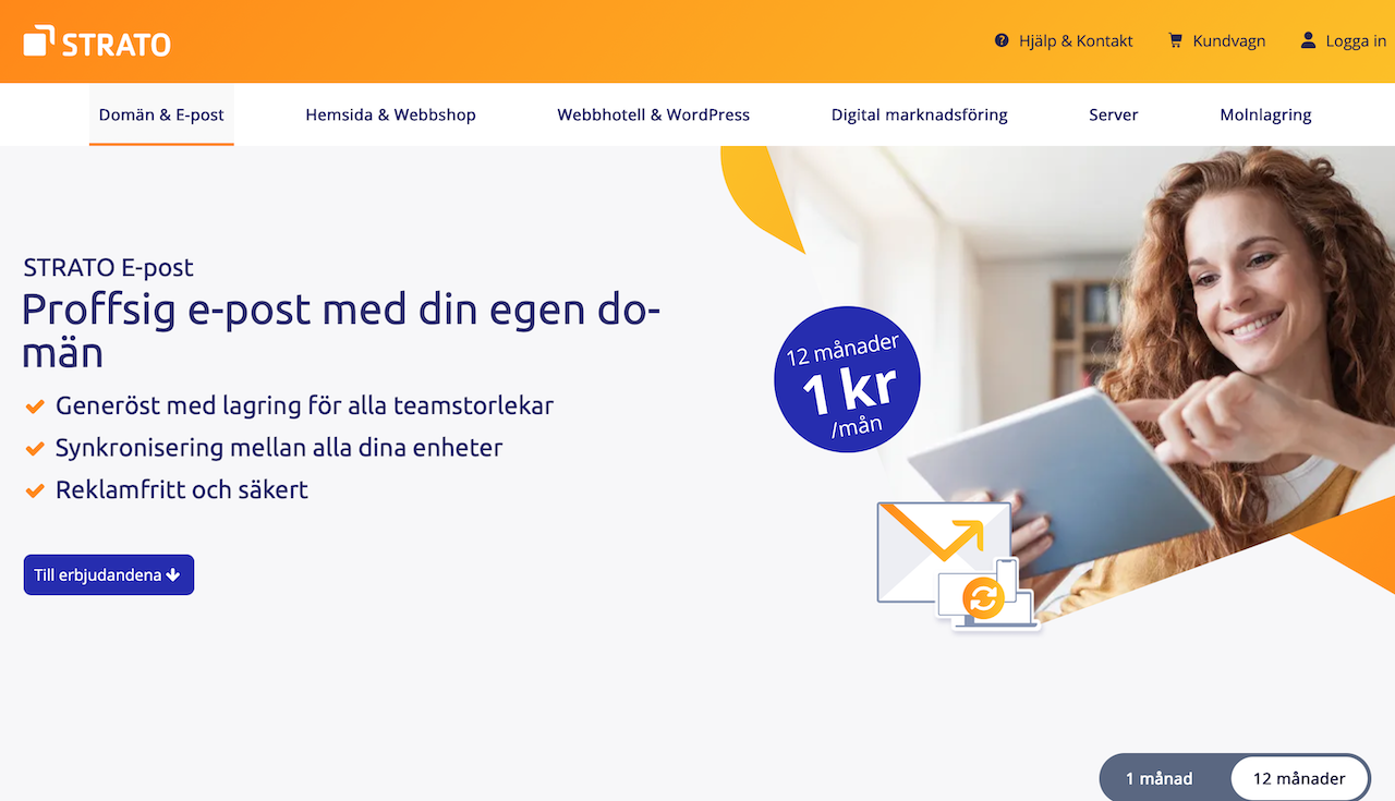Just nu erbjuder Strato e-posthosting med paketet Advanced för 1 krona i månaden första året (förnyas för 39 kr/mån)